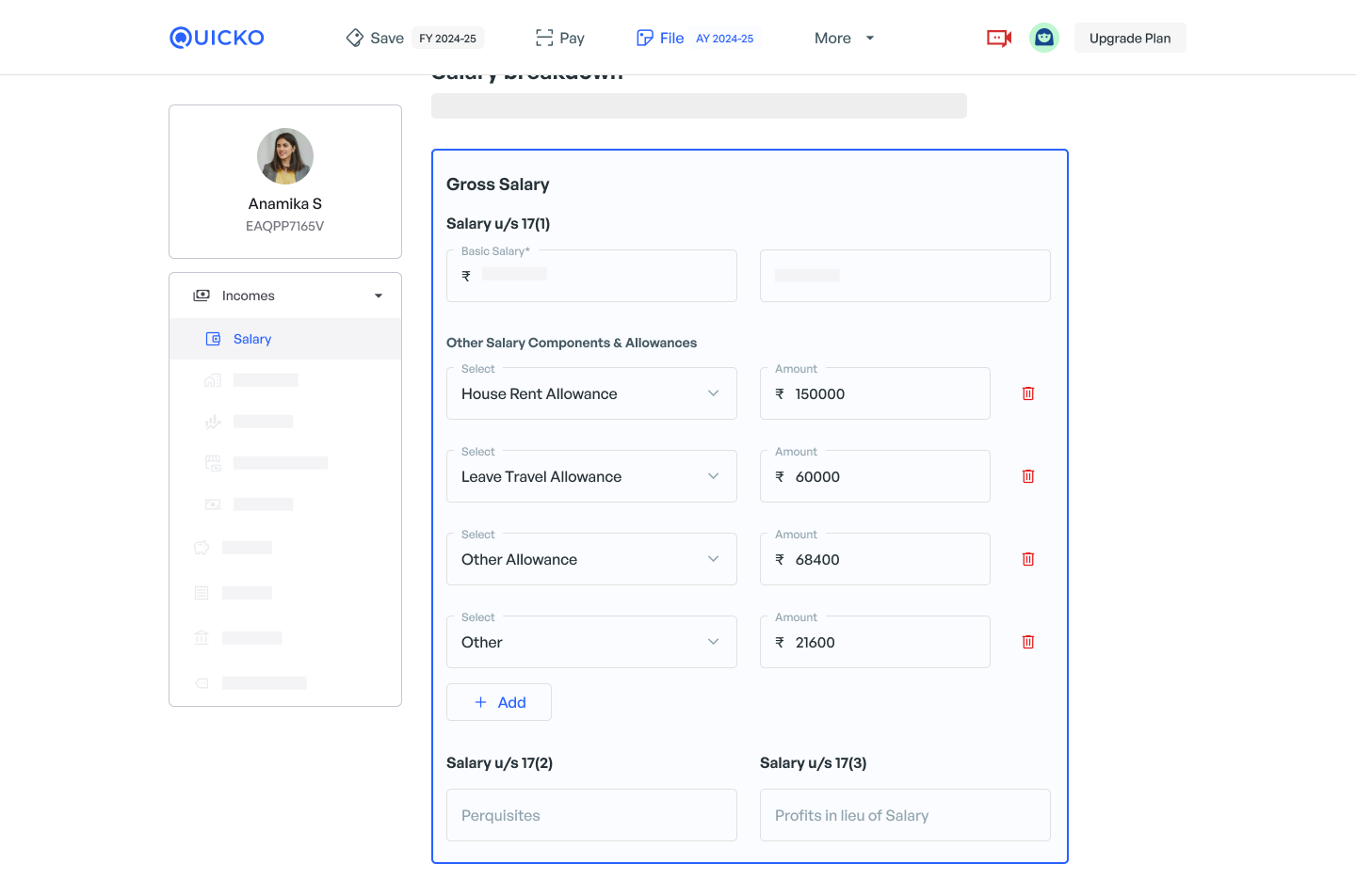 - Enter the salary breakdown and TDS details (if TDS is deducted)