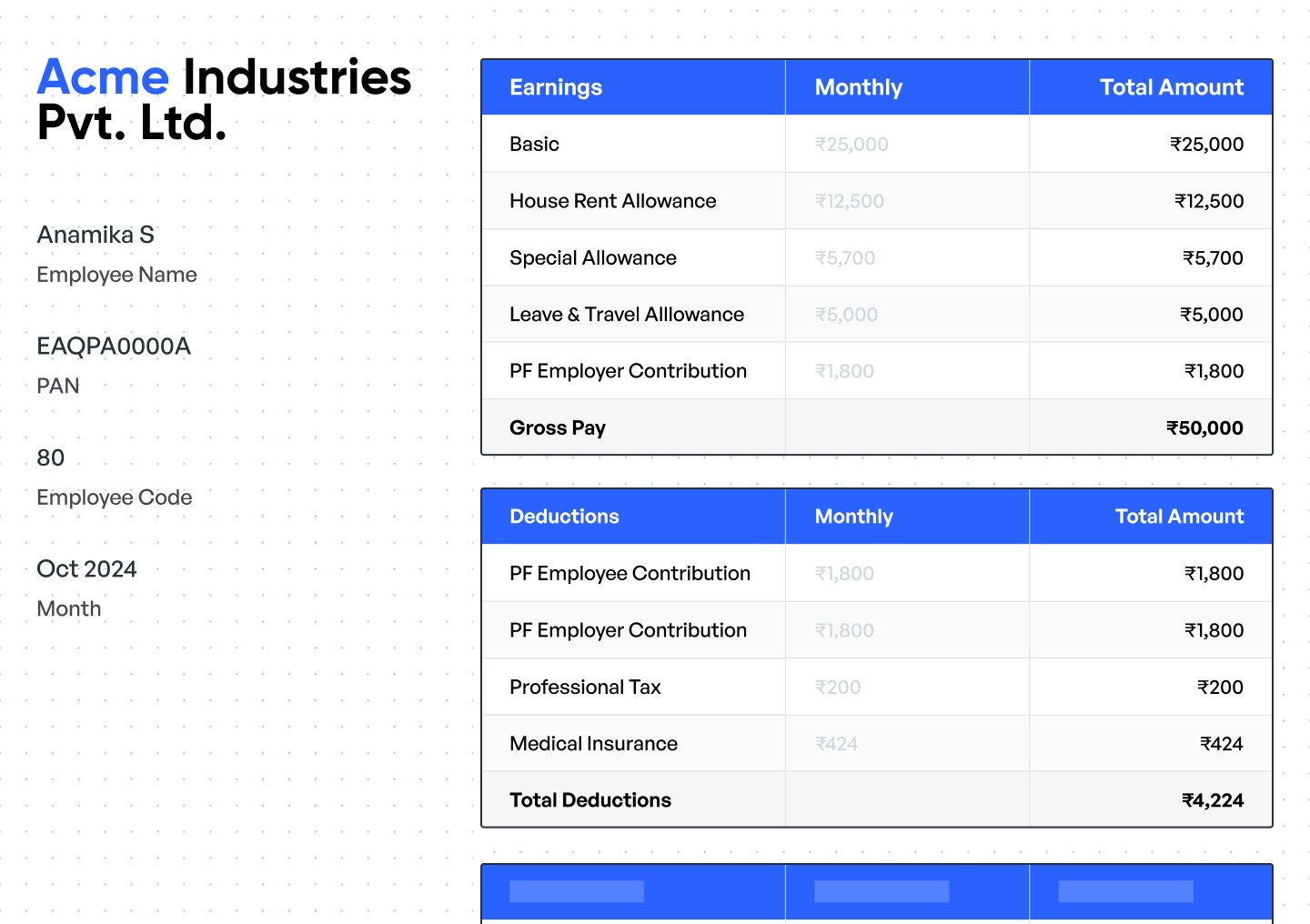 | Component of Pay Slip | Monthly Salary (in ₹) | Annual Salary (in ₹)