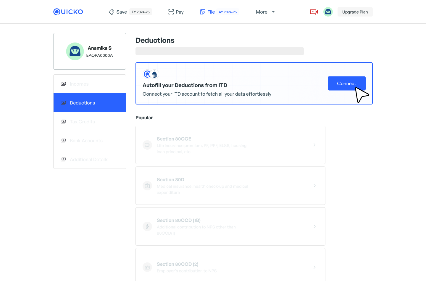 You can auto-fill your salary from the Income Tax Department if your employer has deducted TDS and generated a Form 16. Details such as salary breakdown, including deductions, exemptions, and allowances will be imported. Even if TDS doesn’t apply to ...