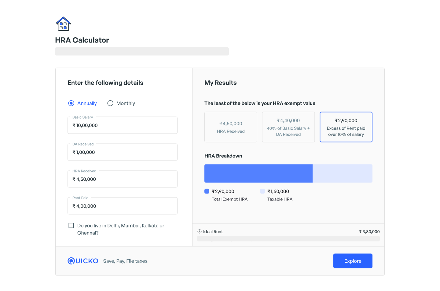 3. Input the exempt HRA amount calculated as per the tool