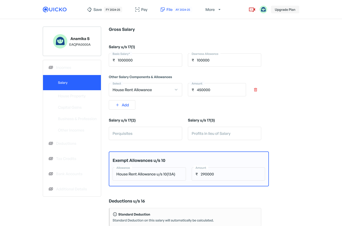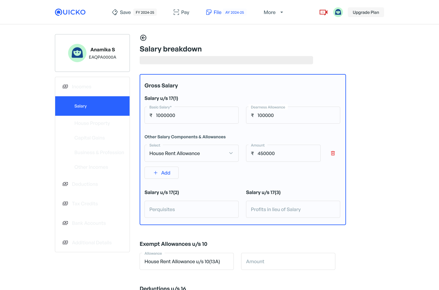 Steps to claim HRA exemption on Quicko
