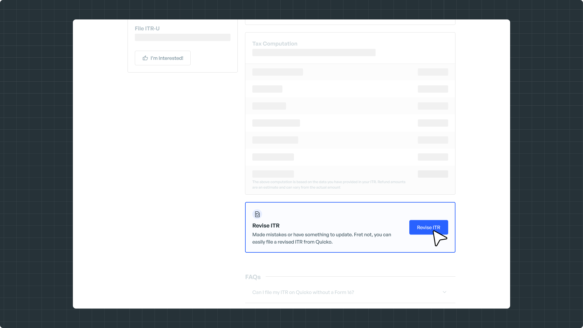 Now for number of reasons, you may want to make changes to your tax return. These may include, reporting additional incomes, claiming deductions or tax credits. Sweat not!!! Quicko makes it easy for you to modify your tax return.