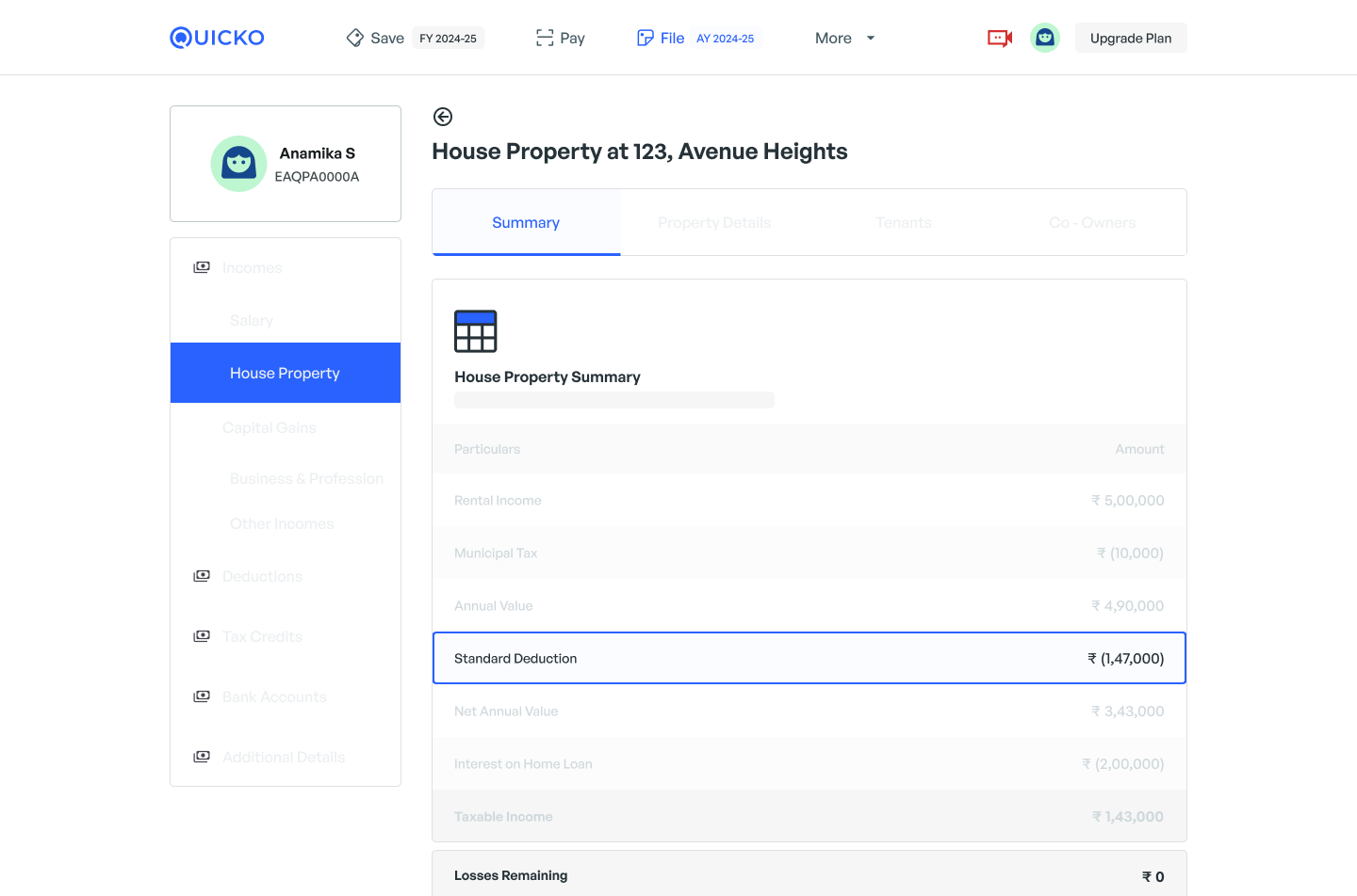 Important Note: Standard deduction is auto-calculated on Quicko.