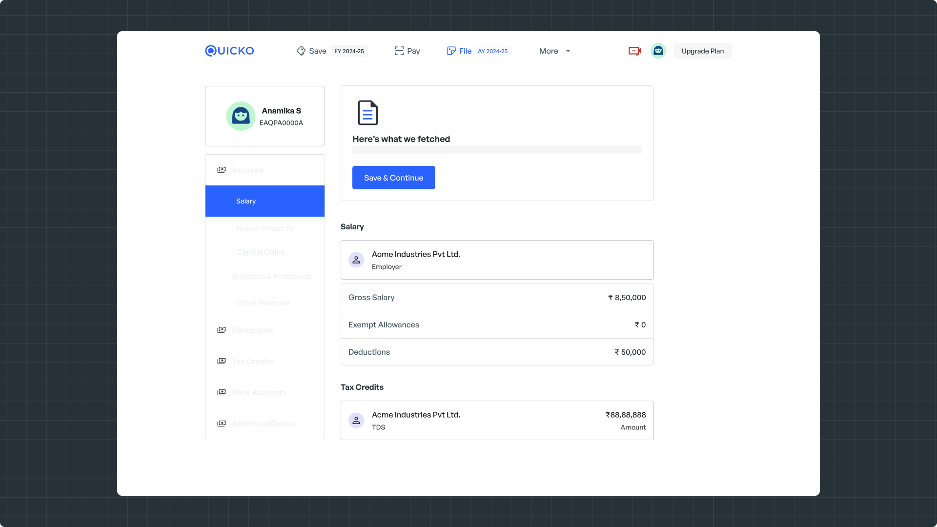 Details like employer name, address, salary breakdown, and TDS will be imported.