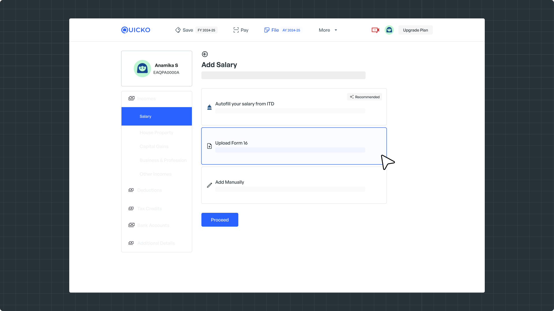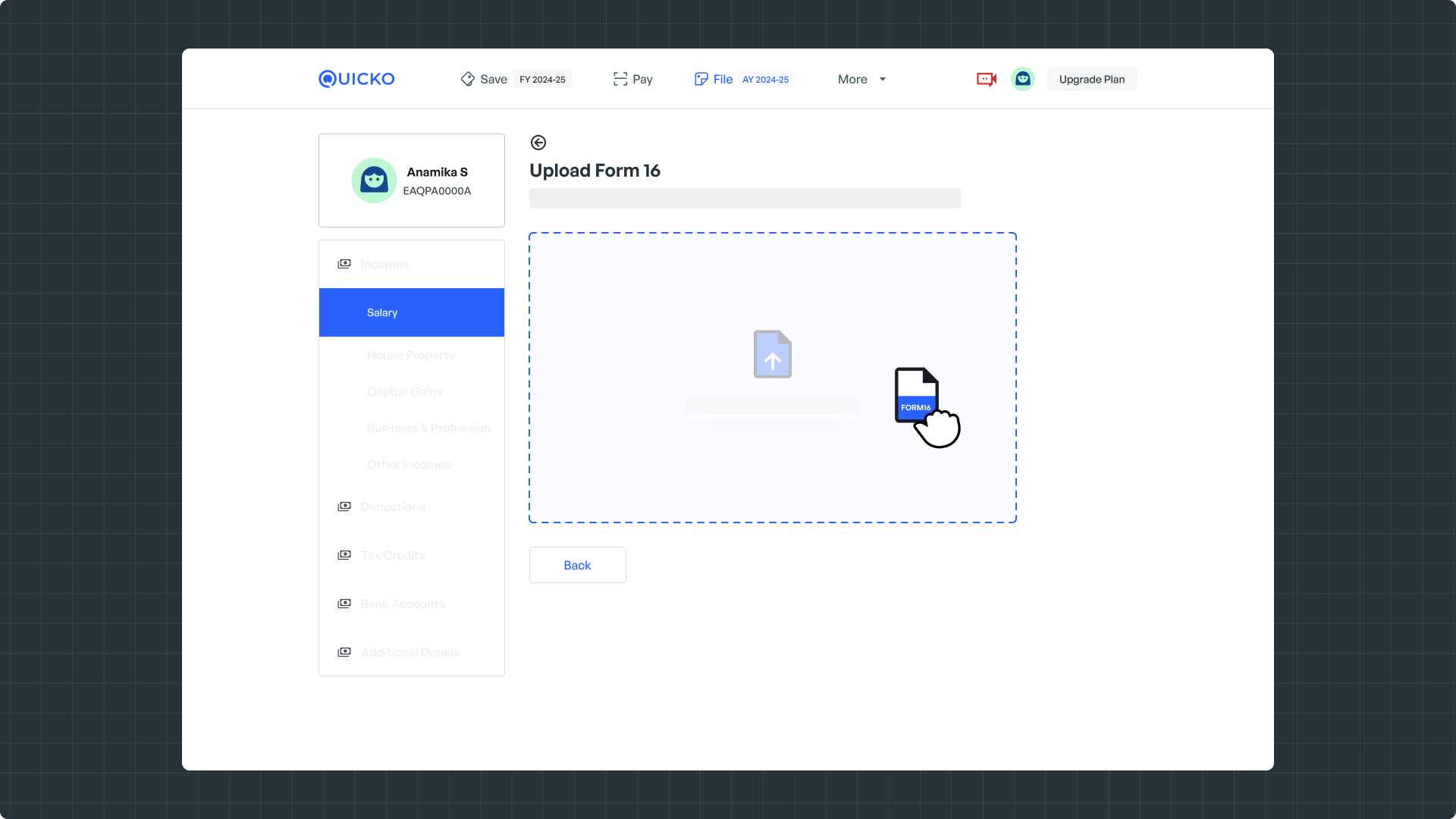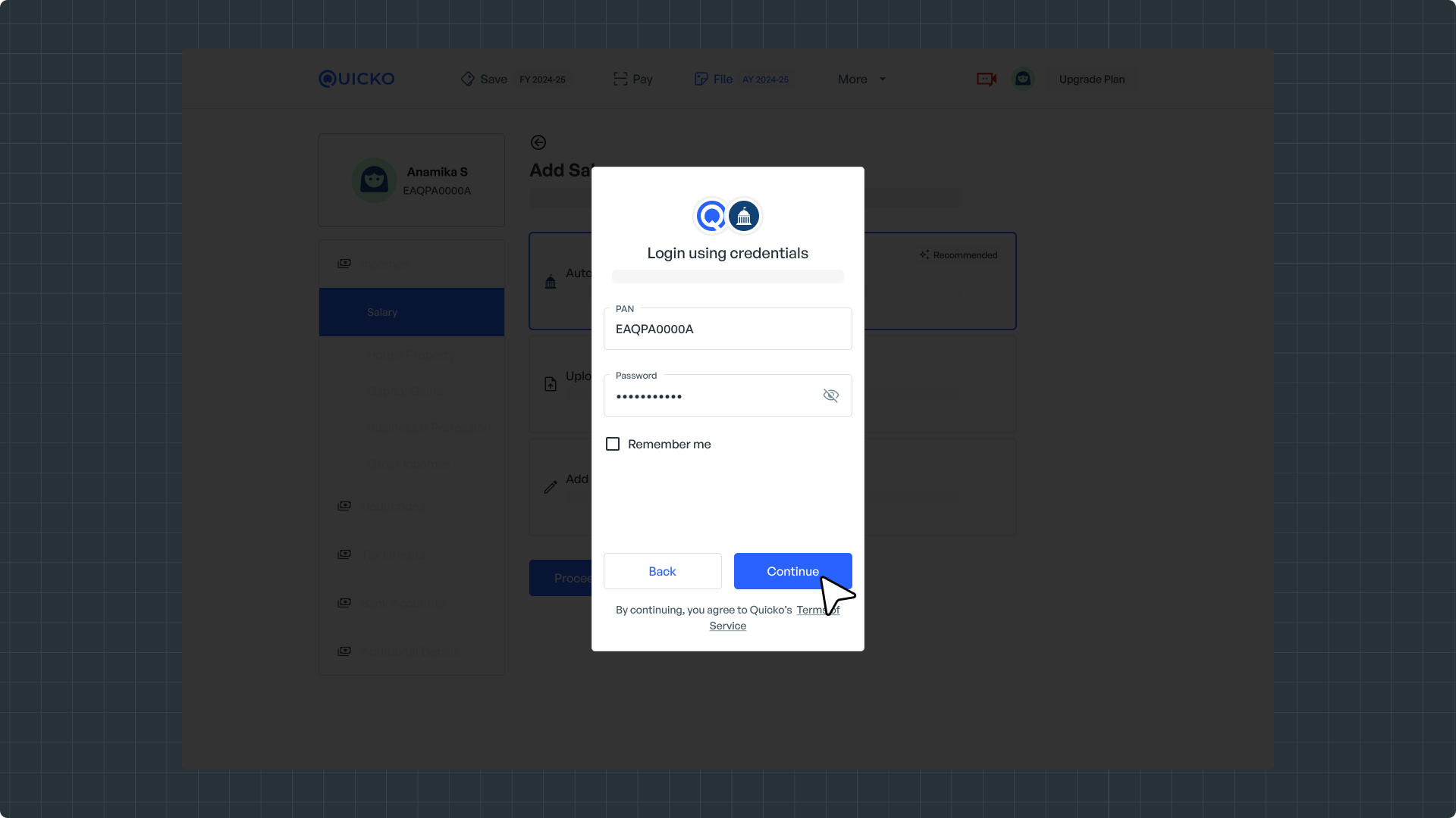 Note: If your Form 16 is password-protected, you'll be prompted to enter the password during upload.
