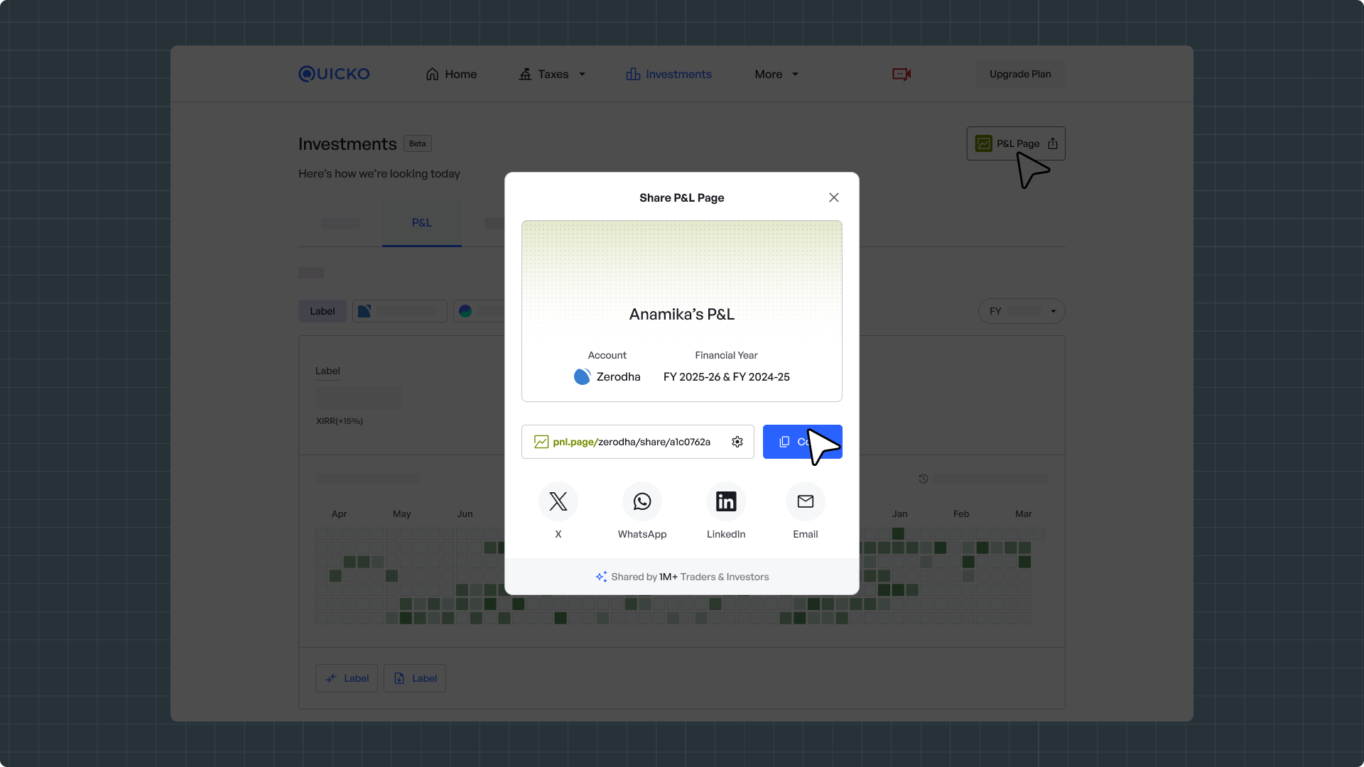 Make sure you connect all your broker apps before you share your P&L. Click