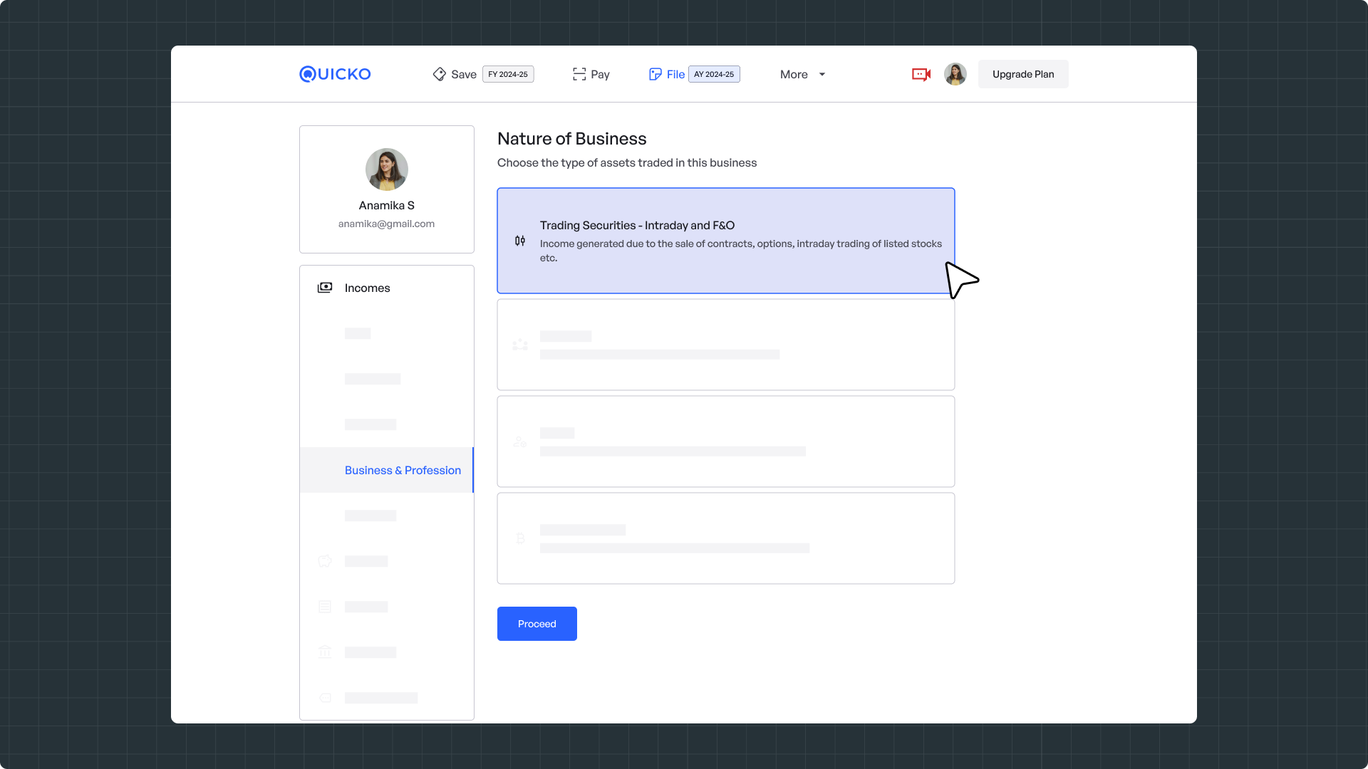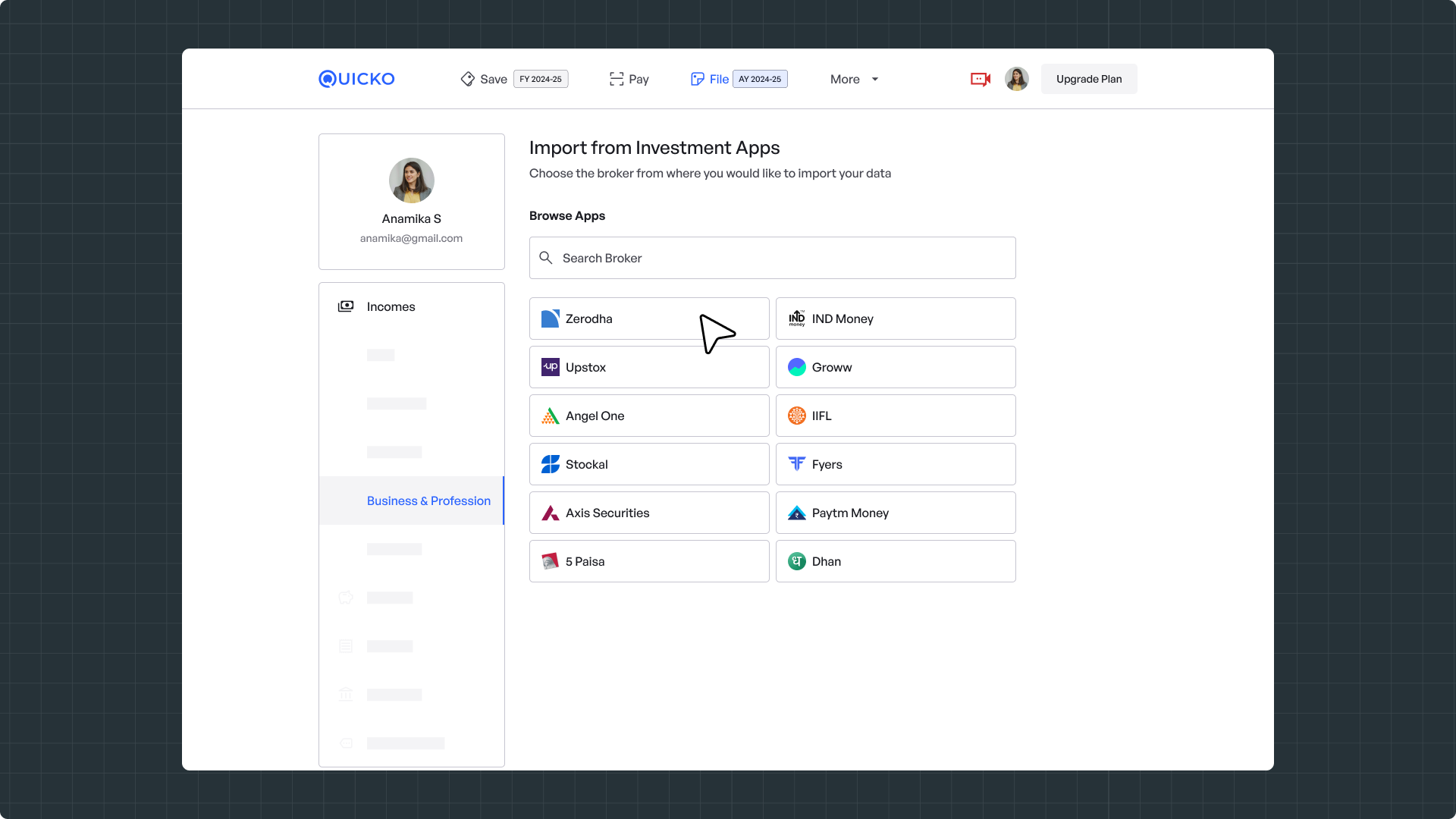 If you're trading in futures, options, or engaging in intraday trading on Zerodha, you can easily import your gains or losses under the Business & Profession section for tax filing.