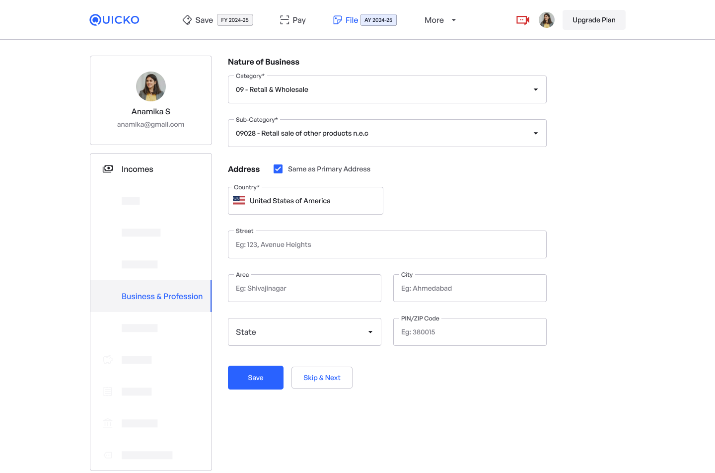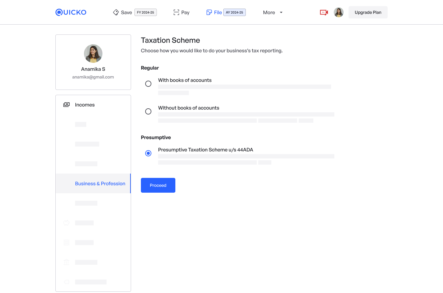 - Choose the taxation scheme – Presumptive Taxation under Section 44ADA