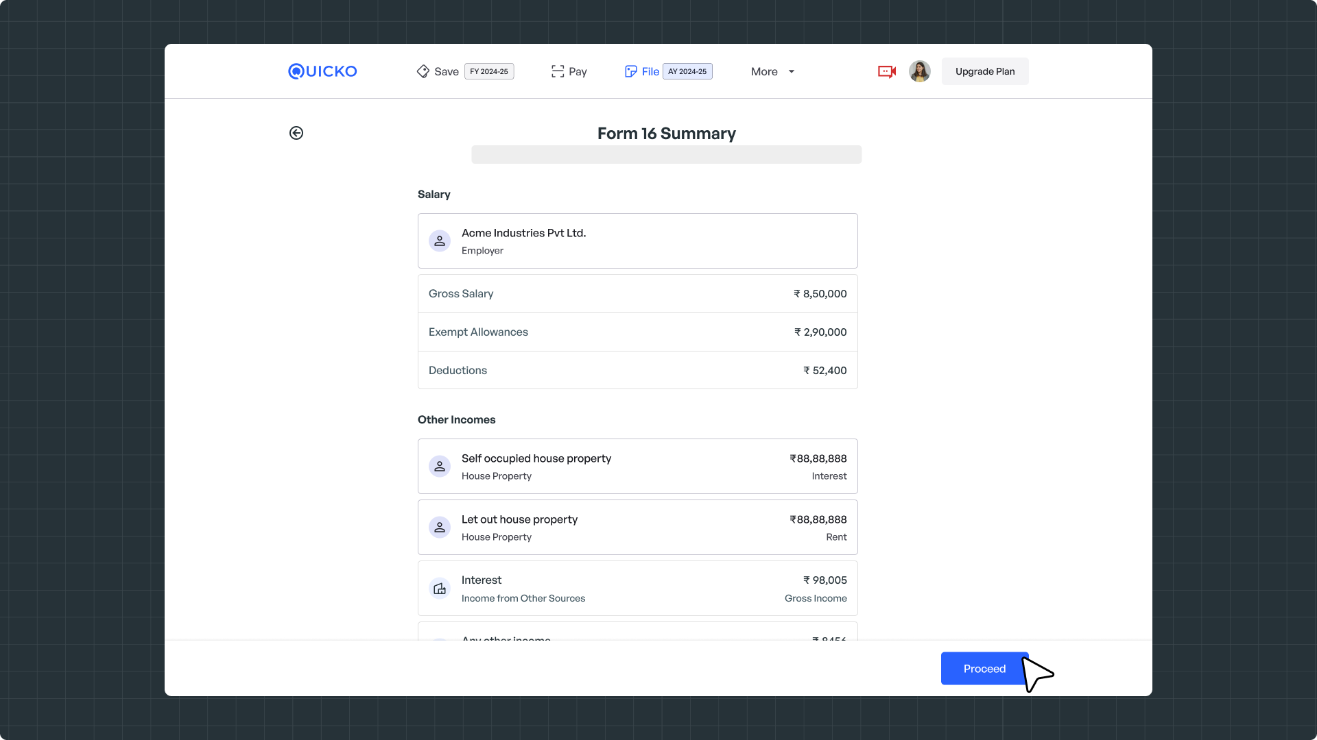 3. Once Form 16 is uploaded, you can review the details and click on Proceed