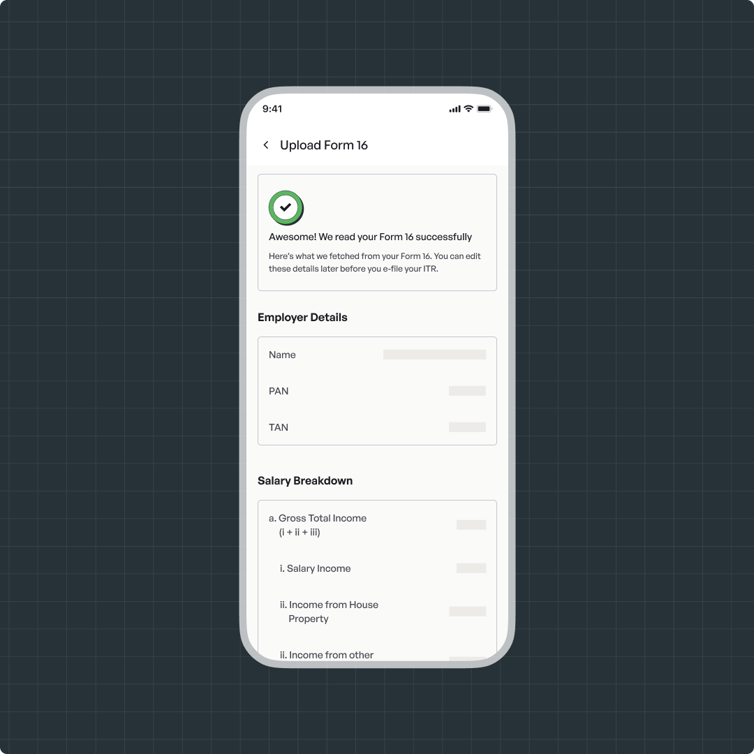 Note: If your Form 16 PDF is password-protected, you’ll be prompted to enter the password during upload. The password is usually your PAN in uppercase letters.