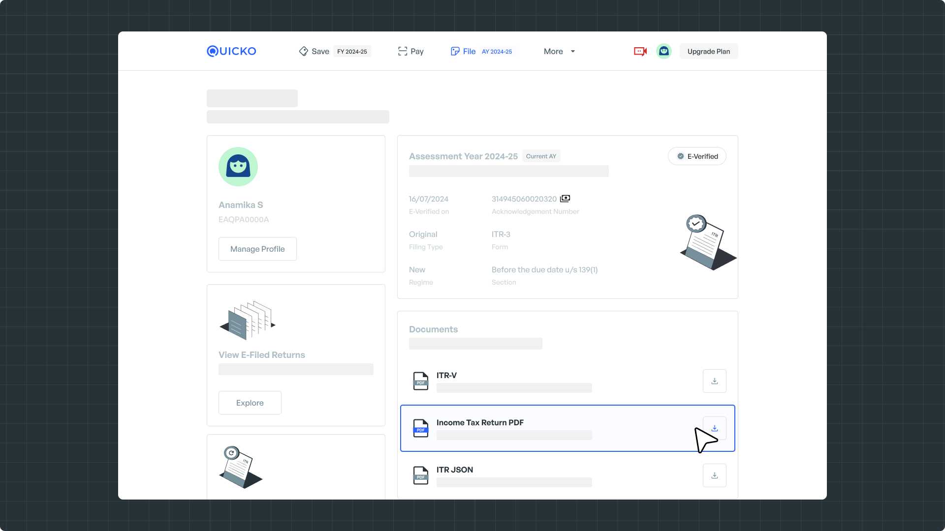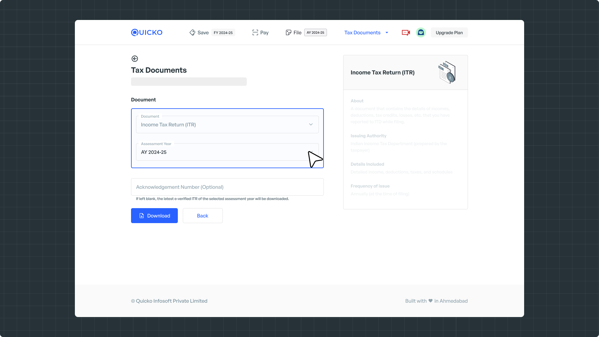 The latest ITR for the selected year will be downloaded as a PDF.