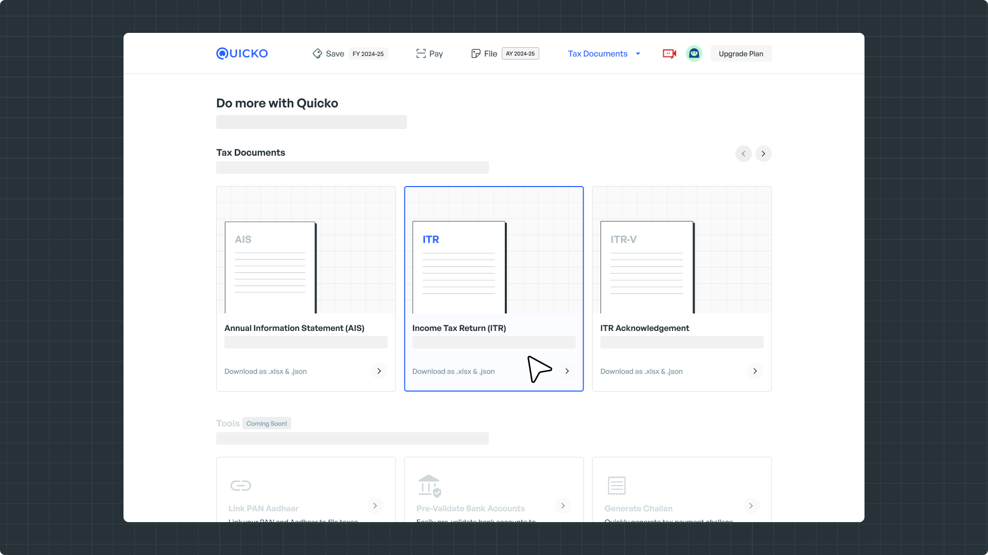 - Navigate to File > Documents and download the ITR